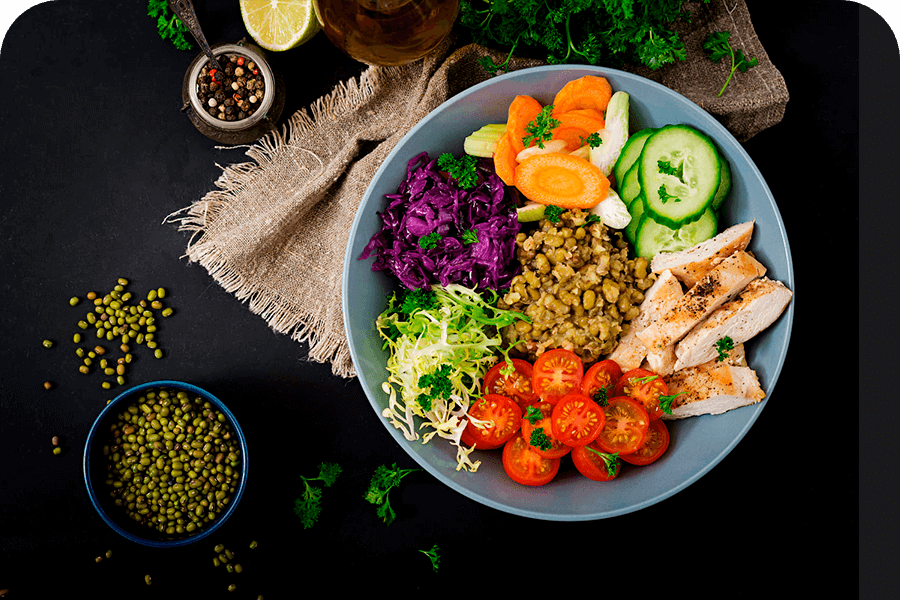 Một bữa tối cân bằng là bữa ăn có đầy đủ các nhóm chất chính như tinh bột, protein và rau xanh, nhưng với lượng vừa phải. Tinh bột có